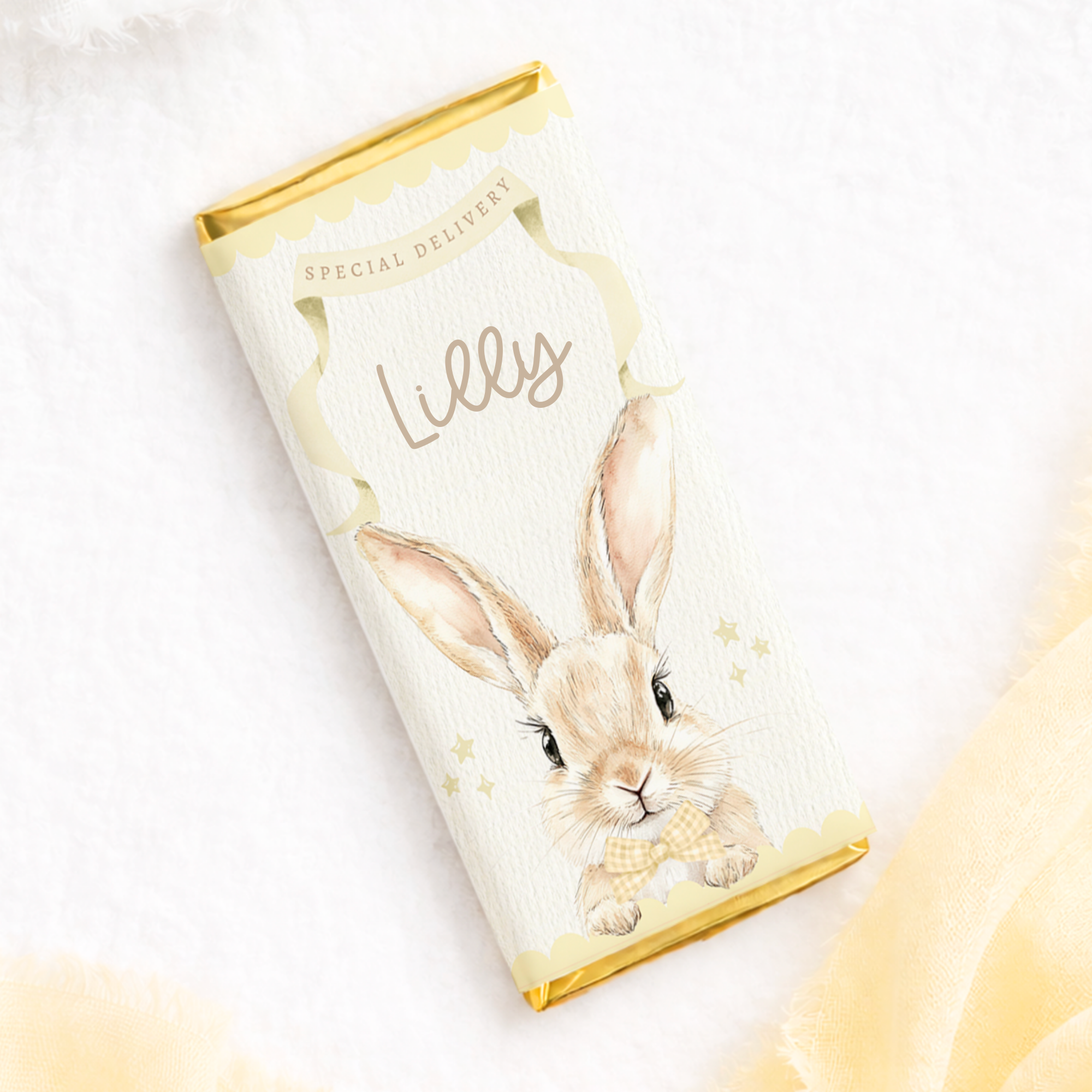 PRINTED RANGE - EASTER - CHOCOLATE WRAPPER - GINGHAM BUNNY - YELLOW